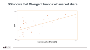 Get in touch, and we will show you what the Brand Divergence Index really means for your brand. Our study covers 9,000 UK consumers, 214 brands and 13 categories. Insights are generated from over one million data points run through 49 advanced models. That means we can pinpoint the strongest predictors of perceived Difference and real-world attraction in your category.